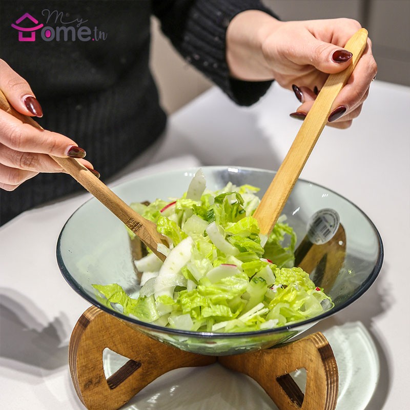 Myhome.tn vous présente sa belle gamme de bol de salade. Les bols de salade sont avec leurs supports et leurs cuillères en bois avec design simple et beau.
