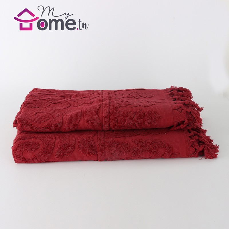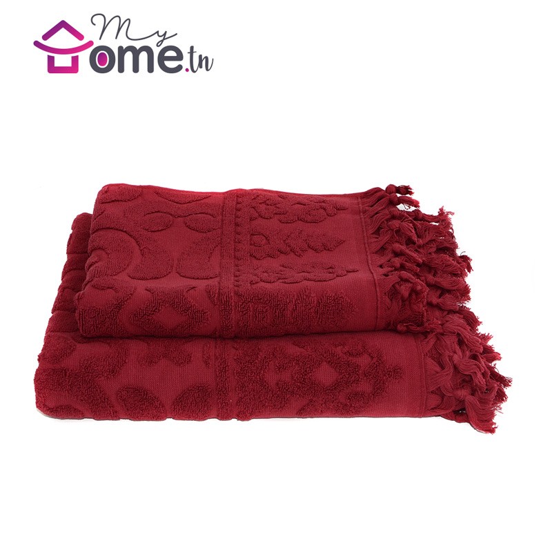 Myhome.tn vous offre un ensemble de drap et serviette de bain pour le douche et le visage avec une belle texture et un design baroque en jacquard.