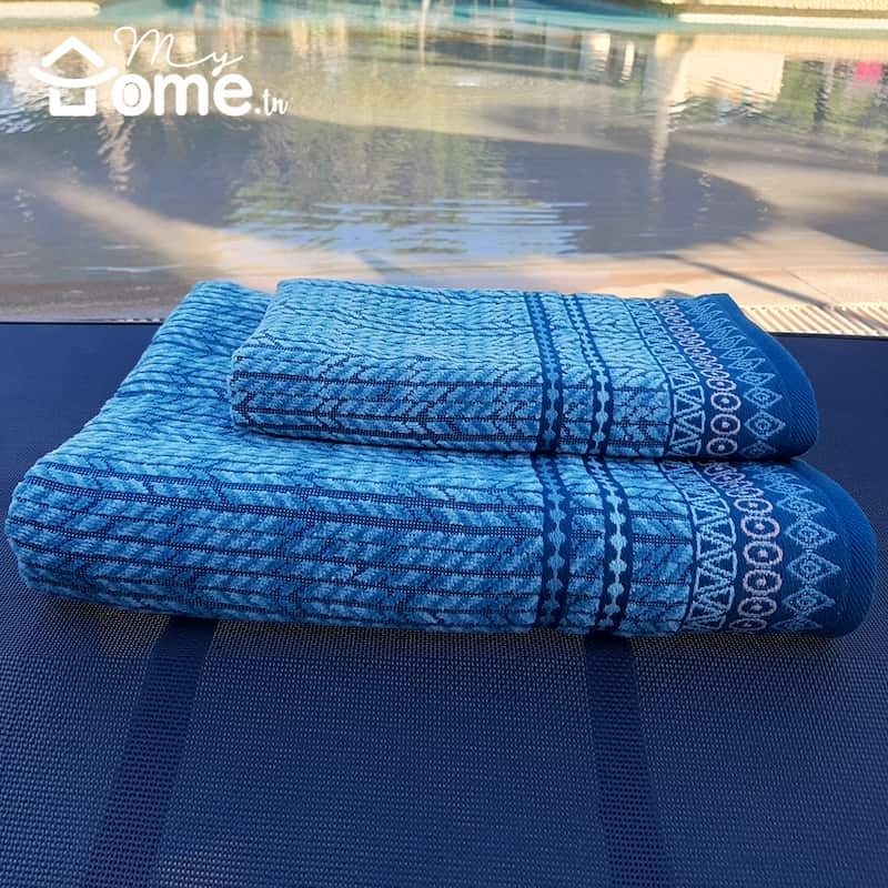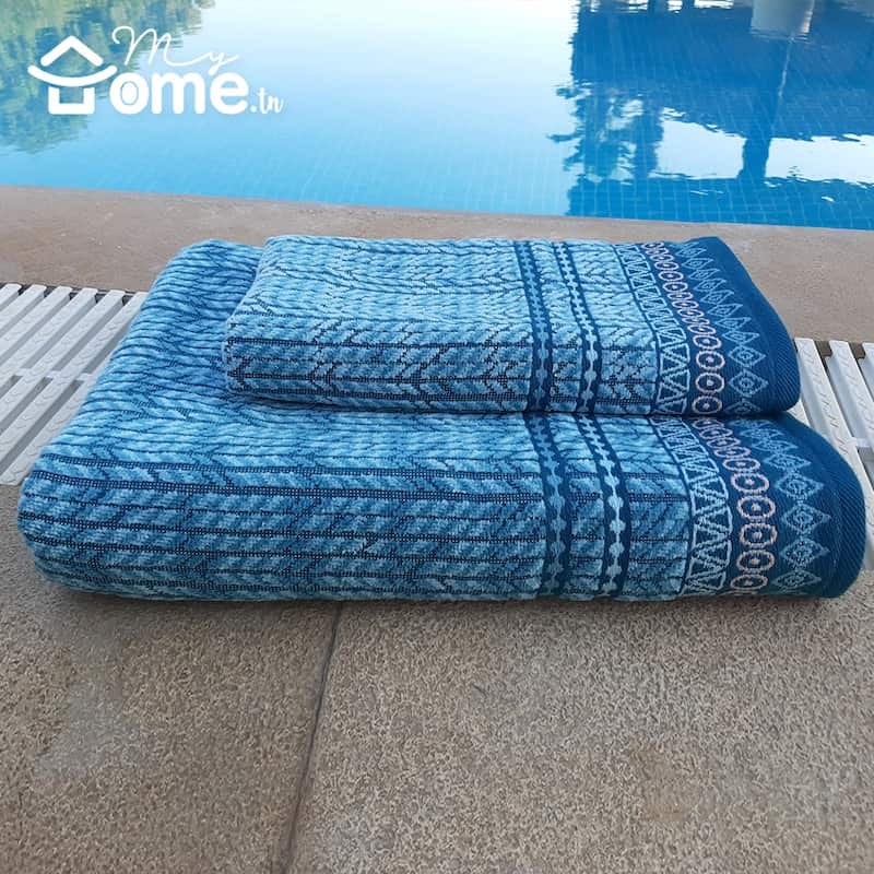 Myhome.tn vous offre un ensemble drap de plage + serviette en motif mosaique en 100% coton . Cet ensemble est disponible en plusieurs couleurs.
