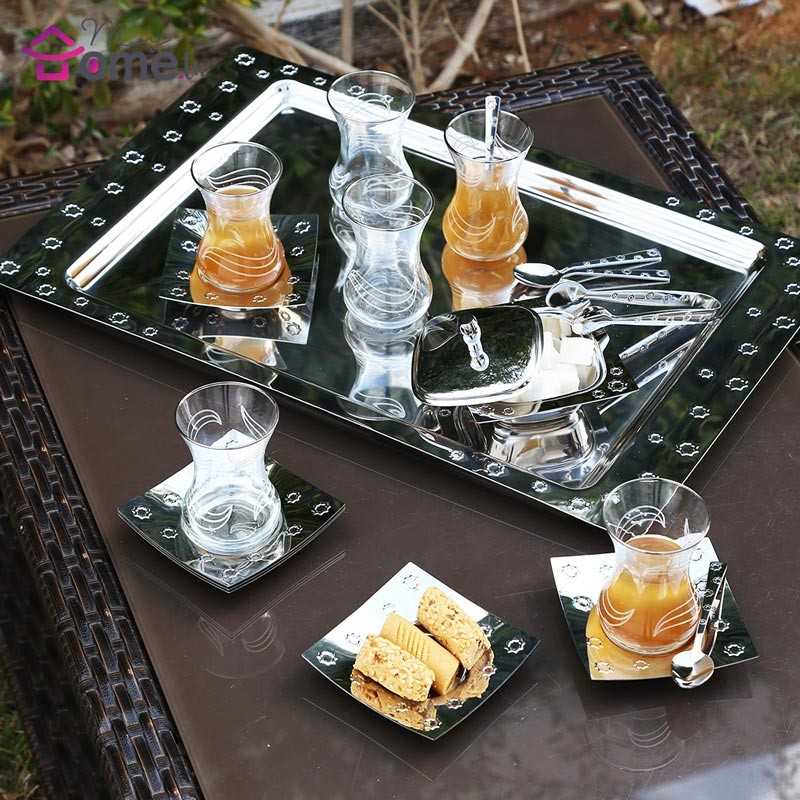 Myhome.tn vous offre une merveilleuse collection de ménagère à thé de haute gamme en inox 18/10. La collection de ménagère est de style marocain authentique.