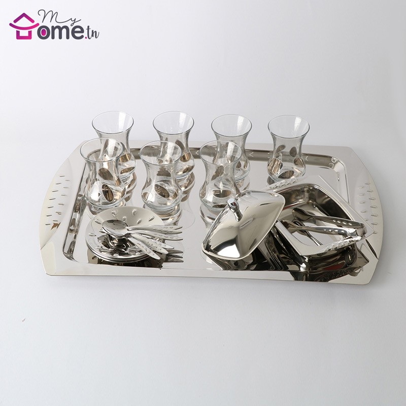 Myhome.tn vous offre une merveilleuse collection de ménagère à thé de haute gamme en inox 18/10. La collection de ménagère est de style marocain authentique.