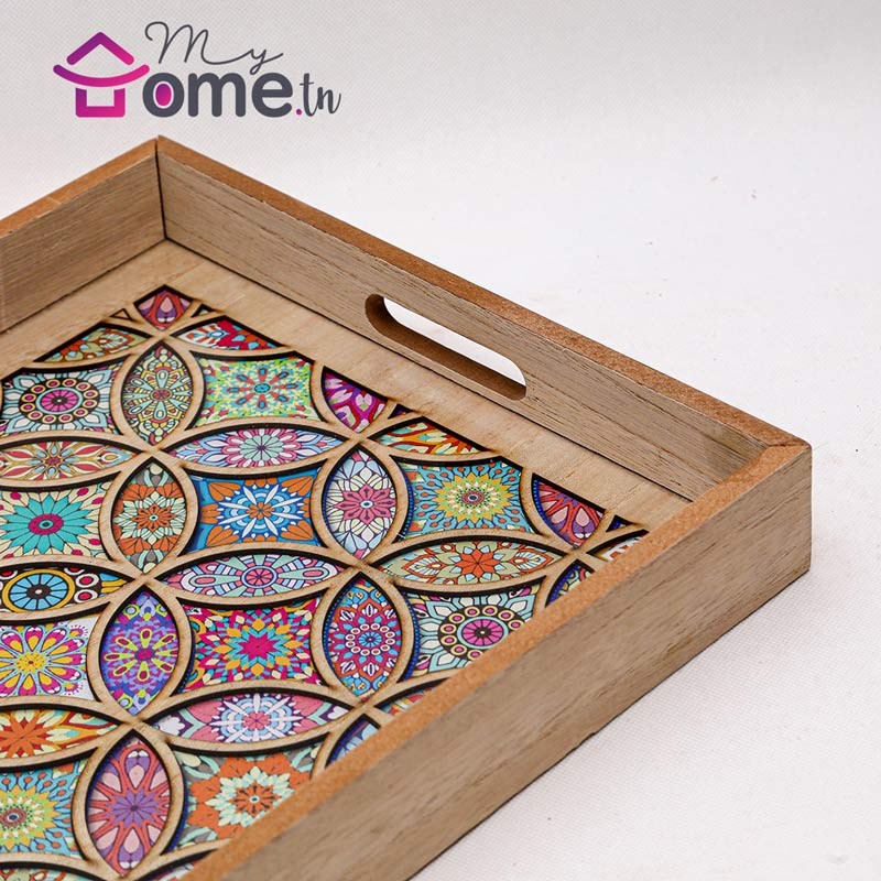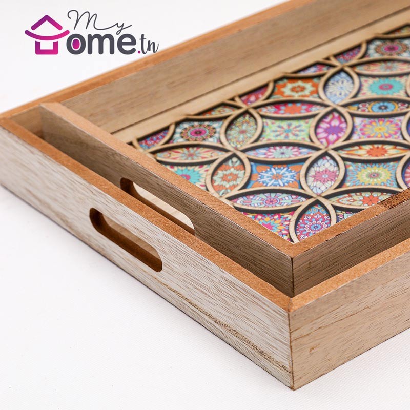 Ce coffret est composé de deux plateaux en bois naturel , ayant une belle finition et design chic, avec une plaque de Plexiglass qui met en valeur le beau motif des plateaux, Les plateaux sont idéals pour présenter les desserts , fruits, boissons ,,,