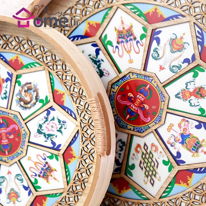 Ce coffret est composé de deux plateaux en bois naturel , ayant une belle finition et design chic, avec une plaque de Plexiglass qui met en valeur le beau motif des plateaux, Les plateaux sont idéals pour présenter les desserts ,  fruits, boissons…