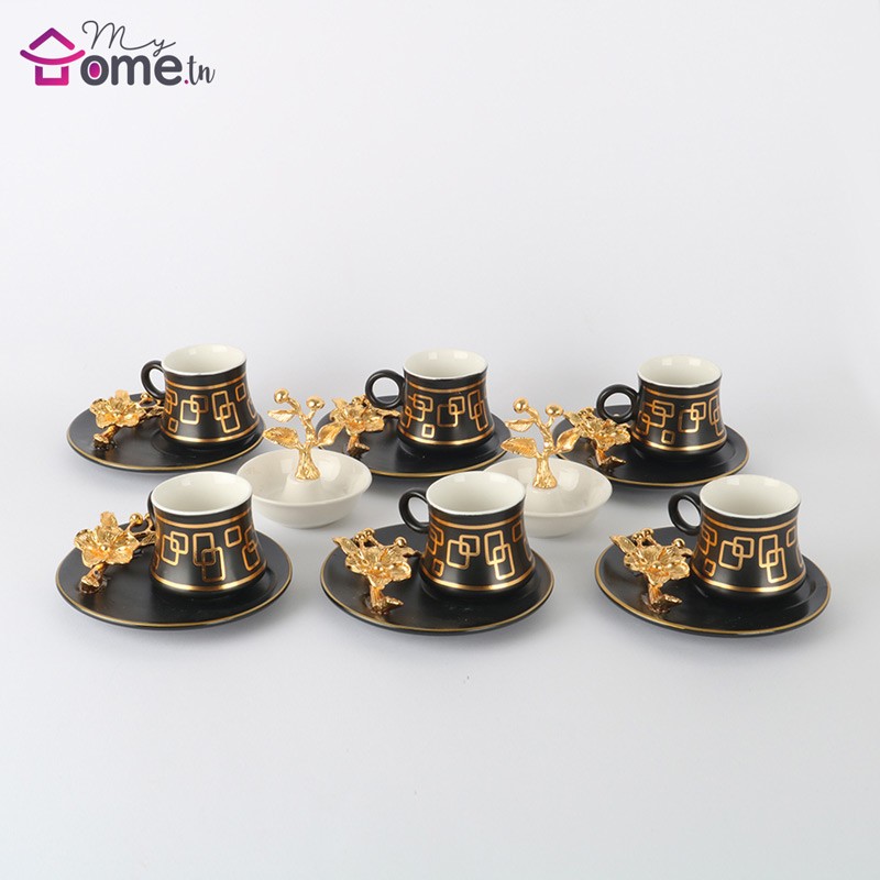 Myhome.tn vous offre le beau service à café modèle Luxor en couleur noir et doré.