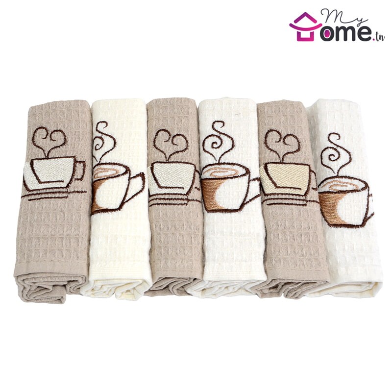 Myhome.tn vous offre une belle gamme de torchons de cuisine , un coffret de 6 torchons de cuisine à base de 100% coton.